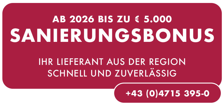 Der Sanierungsbonus 2026 unterstützt den Fenstertausch mit bis zu 5.000 € bzw. 30 % der förderfähigen Kosten. Die Anmeldung ist ab sofort möglich. Die Förderung gilt für Teil- und umfassende Sanierungen. Weitere Infos auf